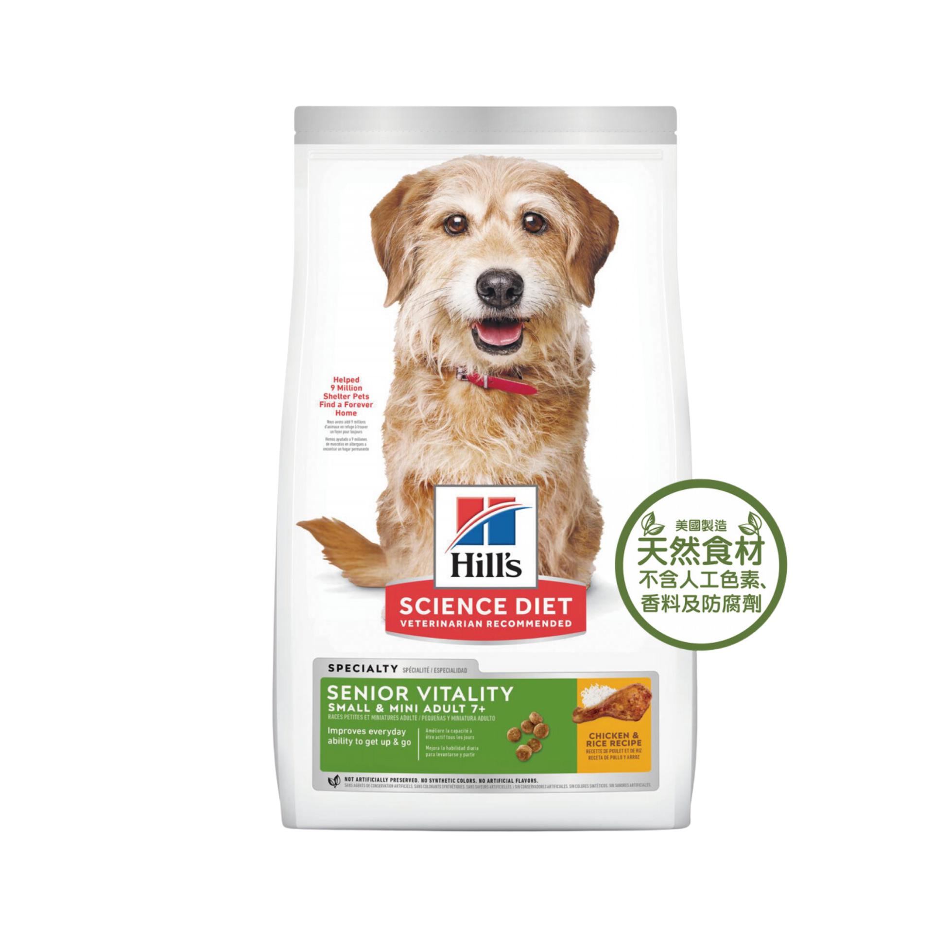 請選用希爾思寵物食品小型高齡犬7歲以上Senior Vitality 提升活力食品,內含精確的營養配方,讓您的高齡小型犬保持年輕活力。採用專利複合原材料,以特殊配方製成7歲以上小型犬會喜愛的食品。此款高齡犬食品內含Omega-3及Omega-6脂肪酸和易消化的成分,以天然原材料製成,維持小型犬皮膚健康、幫助消化。除此之外,精確均衡的原材料有助於增強高齡小型犬的腦部功能、互動和精力。此款高齡寵物食品經過數十年的尖端研究調配而成,絕佳美味絕對會受到小型犬和高齡犬喜愛。
