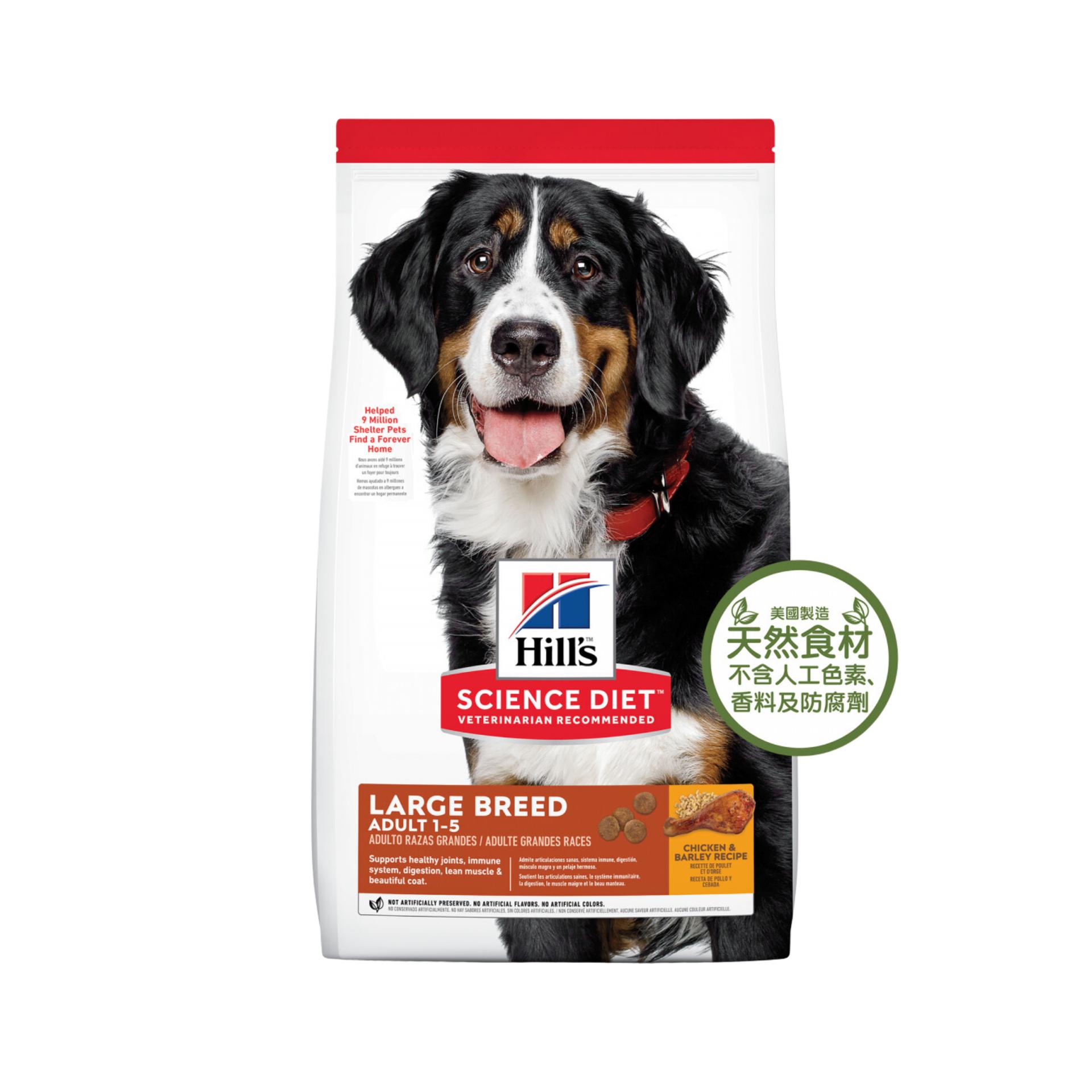 由於大型犬有特定營養需求,因此希爾思寵物食品大型成犬食品特調配方滿足大型犬隻在生命力最旺盛階段的能量需求。此款食品使用優質、易消化原材料製成,專為大型成犬設計,優良蛋白質有助於建構精實肌肉,葡萄糖胺和軟骨素可維持關節健康和良好行動能力。均衡的omega-6和維他命E滋潤愛犬皮膚,維持健康亮麗毛髮。