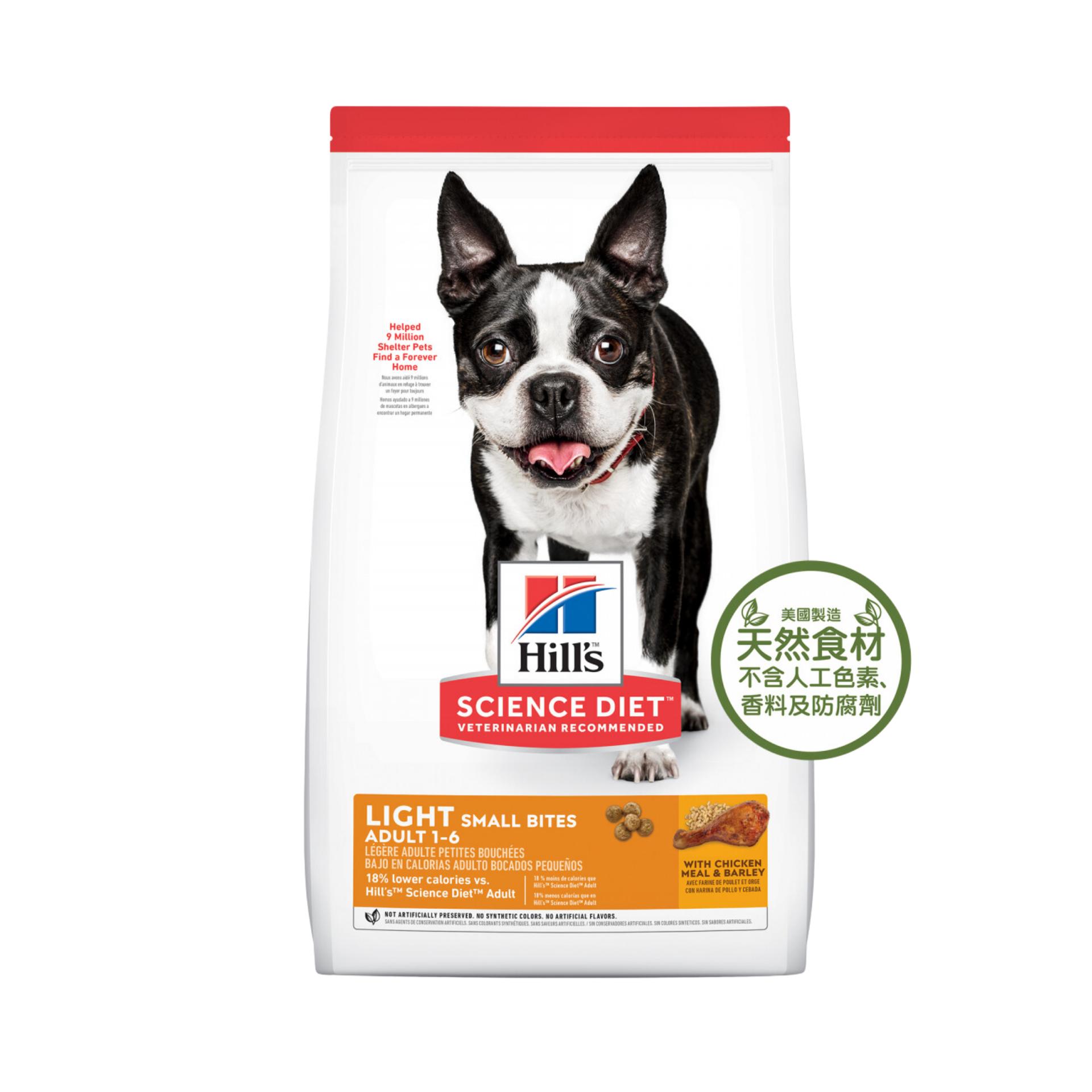 即便是小型犬食量也可能很大,因此應確保小型犬攝取適當均衡比例的營養。希爾思寵物食品成犬低卡細粒乾糧精確的營養配方適合活動量較少、需要低熱量飲食的成犬,有助於維持健康體重和生活型態。美味的雞肉口味細粒配方提供喜愛不同風味的成犬選擇。