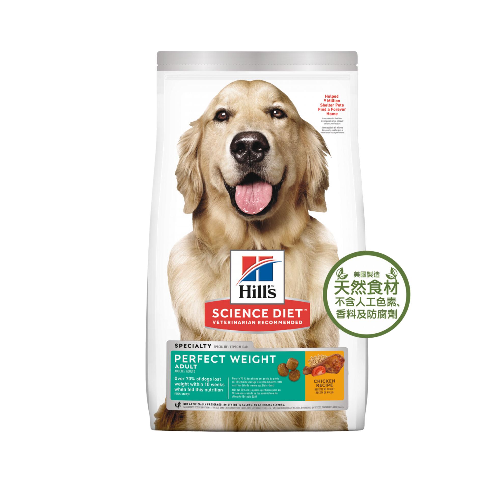 要求狗狗採用低卡路里飲食,對您和愛犬來說是一大挑戰。因此,希爾思寵物食品成犬食品 Perfect Weight 完美體態提供突破性、體重管理的美味營養配方,讓您的狗狗快樂享用。此款體重管理食品內含維持精瘦肌肉所需的蛋白質,臨床證實10週內便能產生減重效果,以天然食材製成,非常適合有相關需求的狗狗。此款健康體重犬用食品經過數十年的尖端研究調配而成,絕佳美味絕對會受到成犬喜愛。