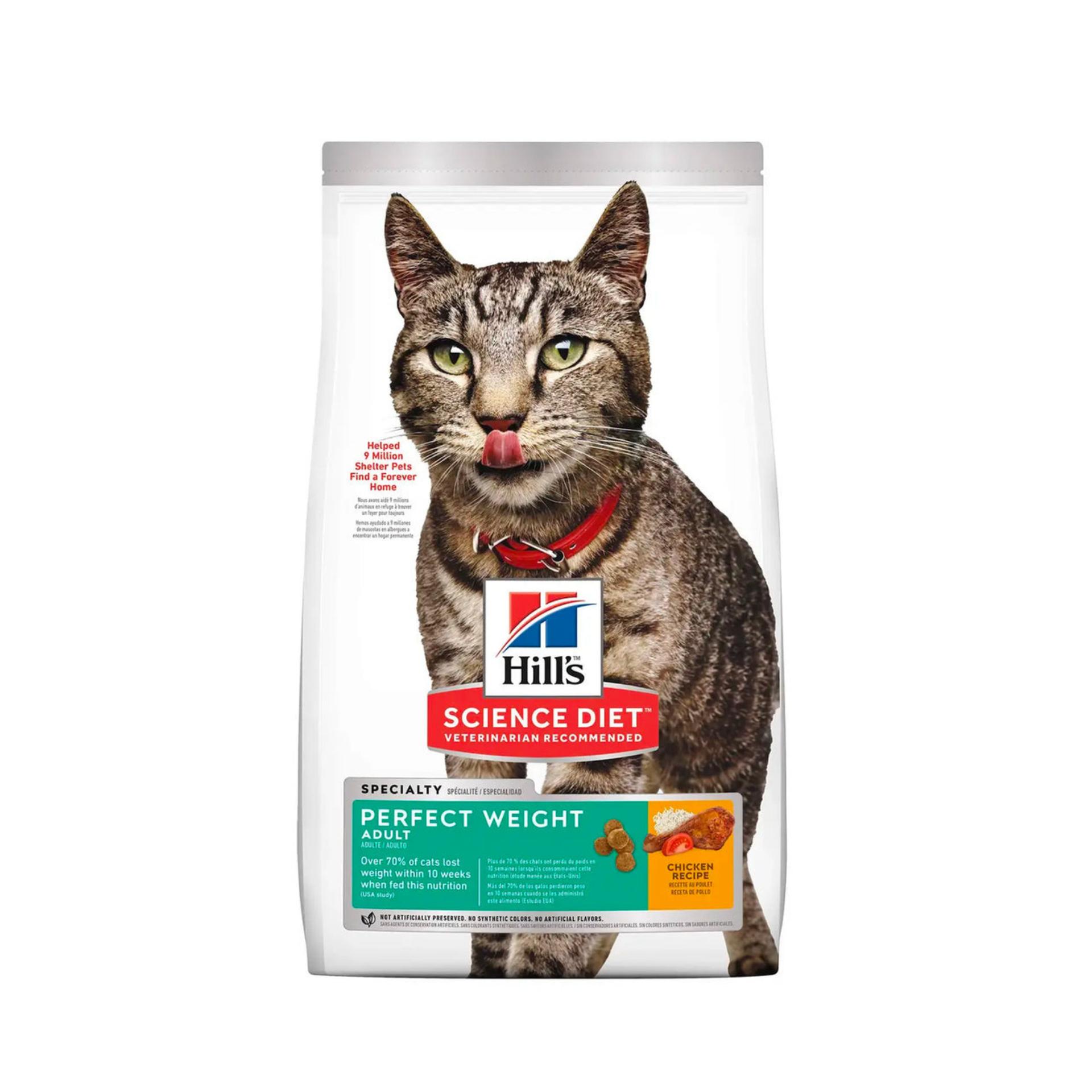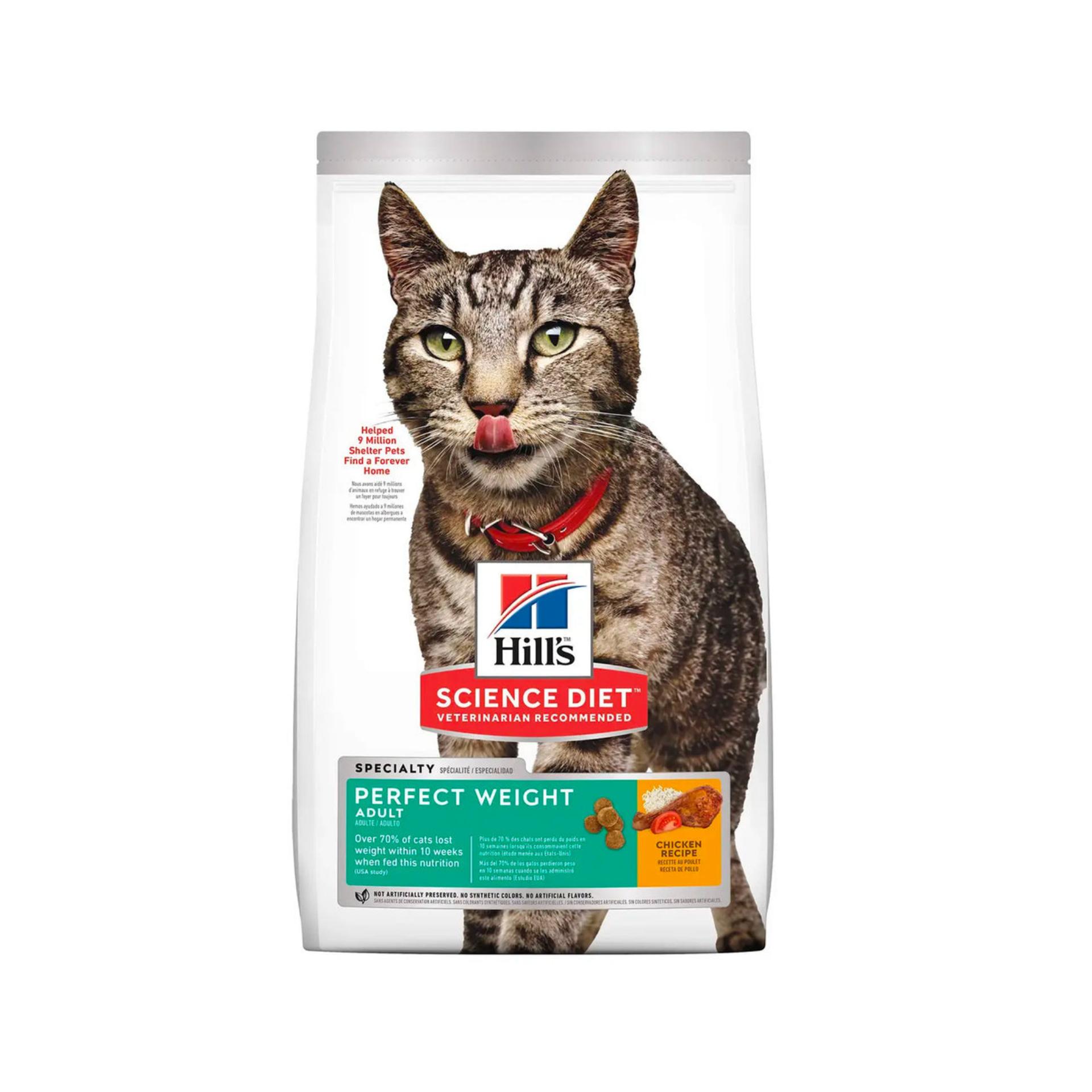 不論愛貓是否明顯有體重問題,或是您希望牠維持健康體態,希爾思寵物食品 Perfect Weight 完美體態乾貓糧提供成貓美味的突破性體重管理營養配方,幫助您解決相關問題。搭配美味的雞肉口味,超過70%的貓咪在餵食此成貓顆粒乾糧的10週內減輕體重。此款貓用食品以天然原材料製成,提供優良蛋白質在正餐間隔時間維持飽足感,同時保有精實肌肉。